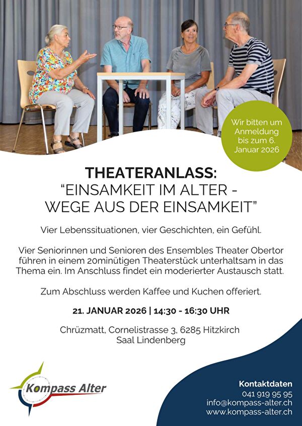 Kontaktdaten Anmeldung: Kompass Alter, 041 919 95 95, info@kompass-alter.ch